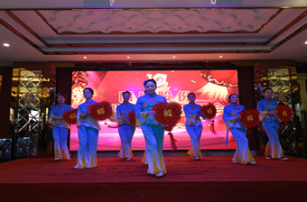 由太阳成tyc7111cc工会组织的2015新春团拜会在新大自然酒店举行。员工自发编排的舞蹈、小品、相声、话剧、等节目赢得员工们的阵阵掌声,现场气氛活跃,笑声不断,精彩纷呈。